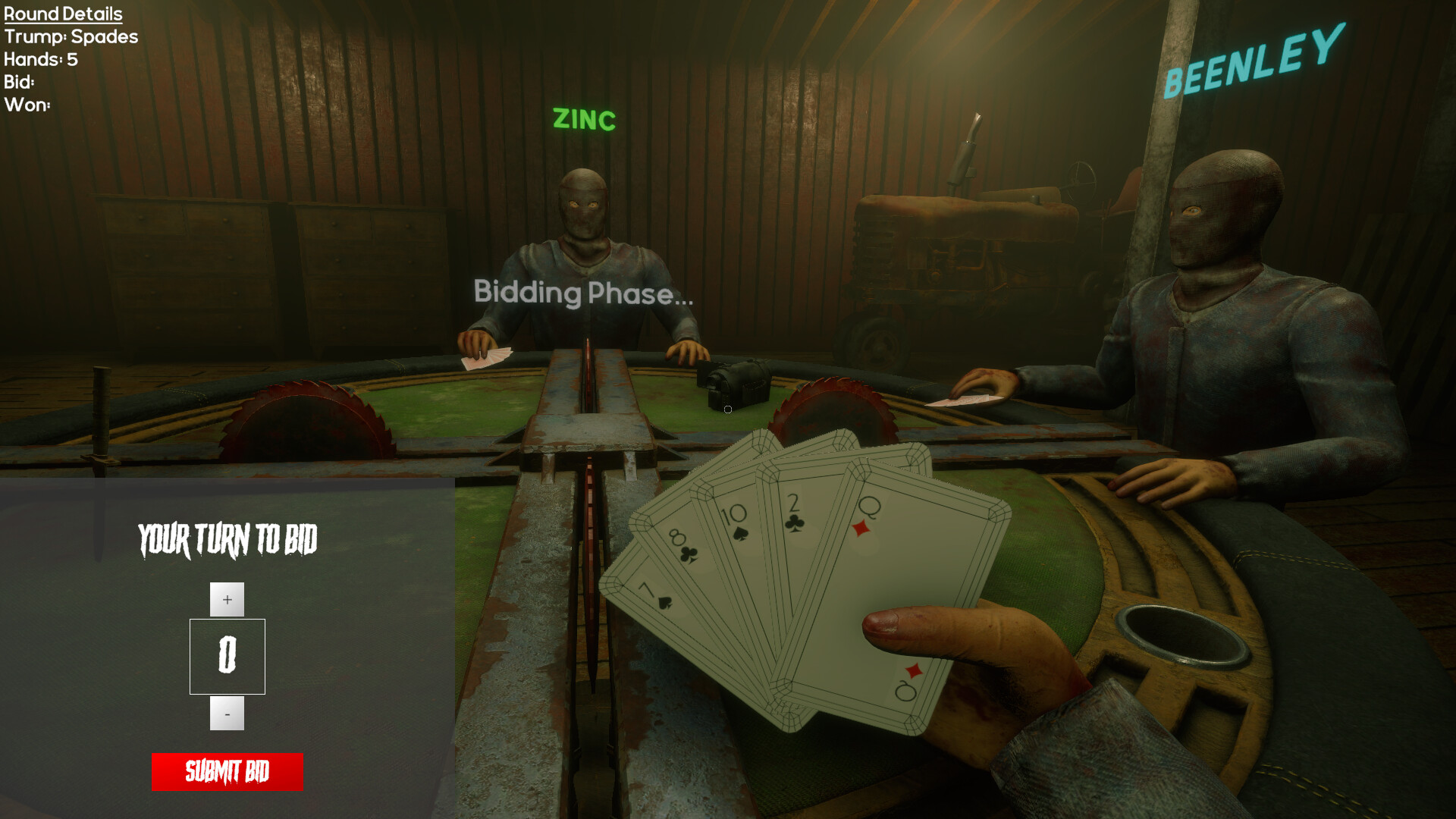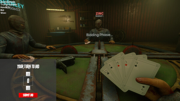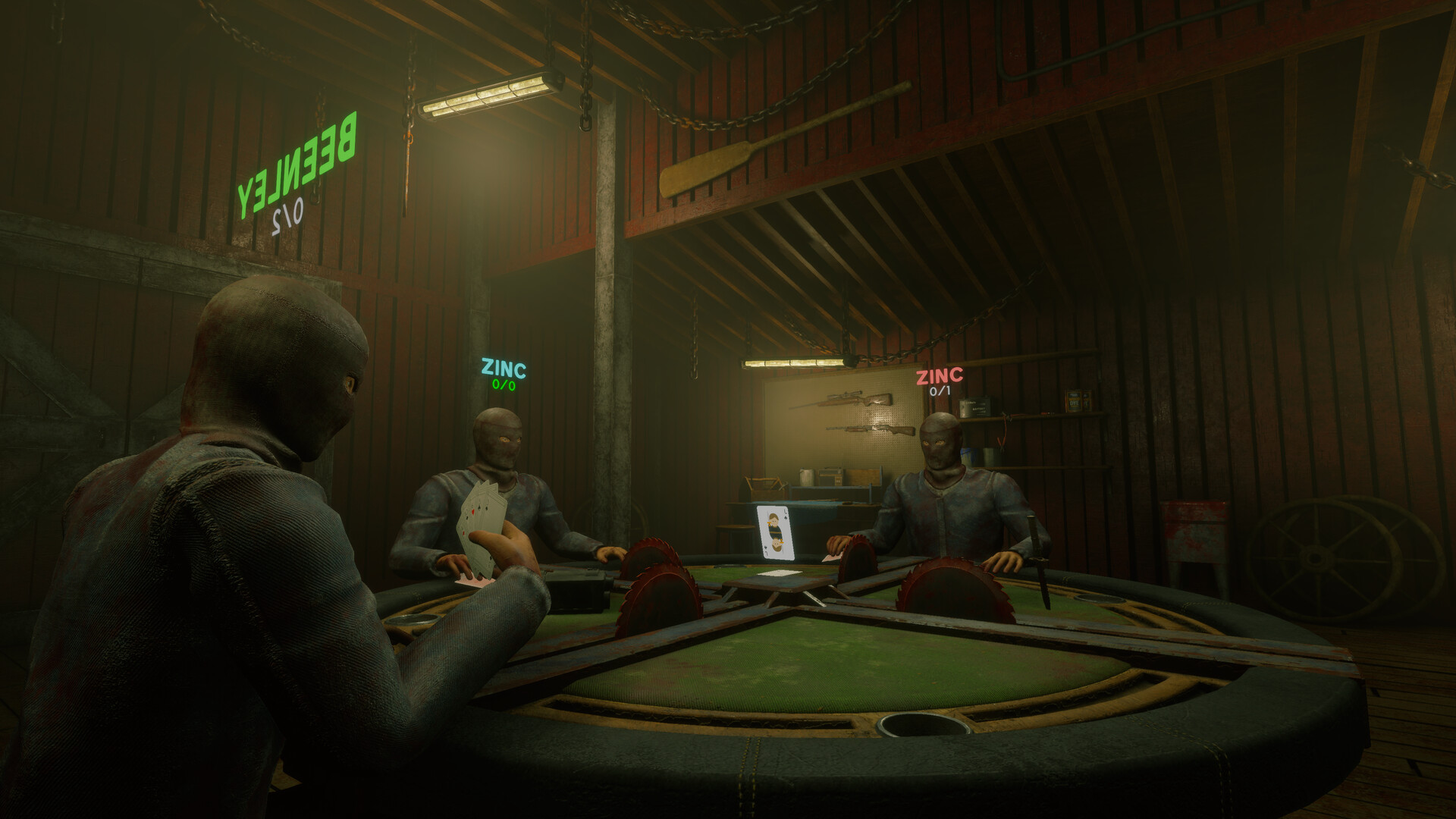 You wake up trapped in a barn, forced into a deadly game of survival. You and three others sit around a table, facing a brutal card game where every mistake brings the saw in front of you closer. Win, and it moves away. Lose, and it inches closer to death!