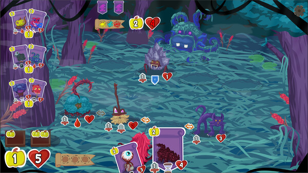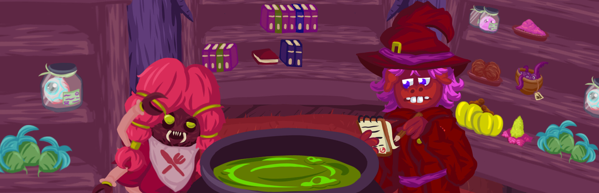 Shyla the Shyder is a strange pink insect lady that only seems to fall from one predator to the next. Until one day, she finds the opportunity to fight back by summoning other creatures to her side and cooking dubious magic recipes with her trusty cauldron !
