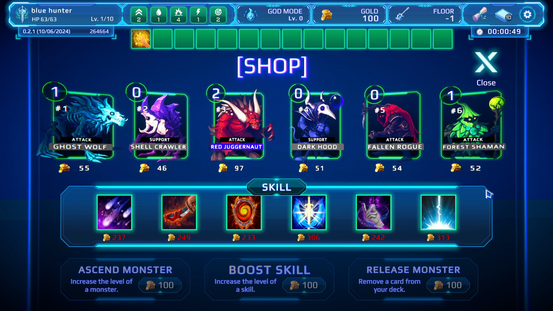 Blue Hunter ist ein Roguelike-Deckbuilding-Spiel mit RPG-Elementen. K?mpfe gegen Monster und belebe sie wieder, steige im Level auf, w?hle deine Statistiken, erstelle dein Deck aus untoten Monstern, besiege G?tter und werde der allm?chtige Gott!