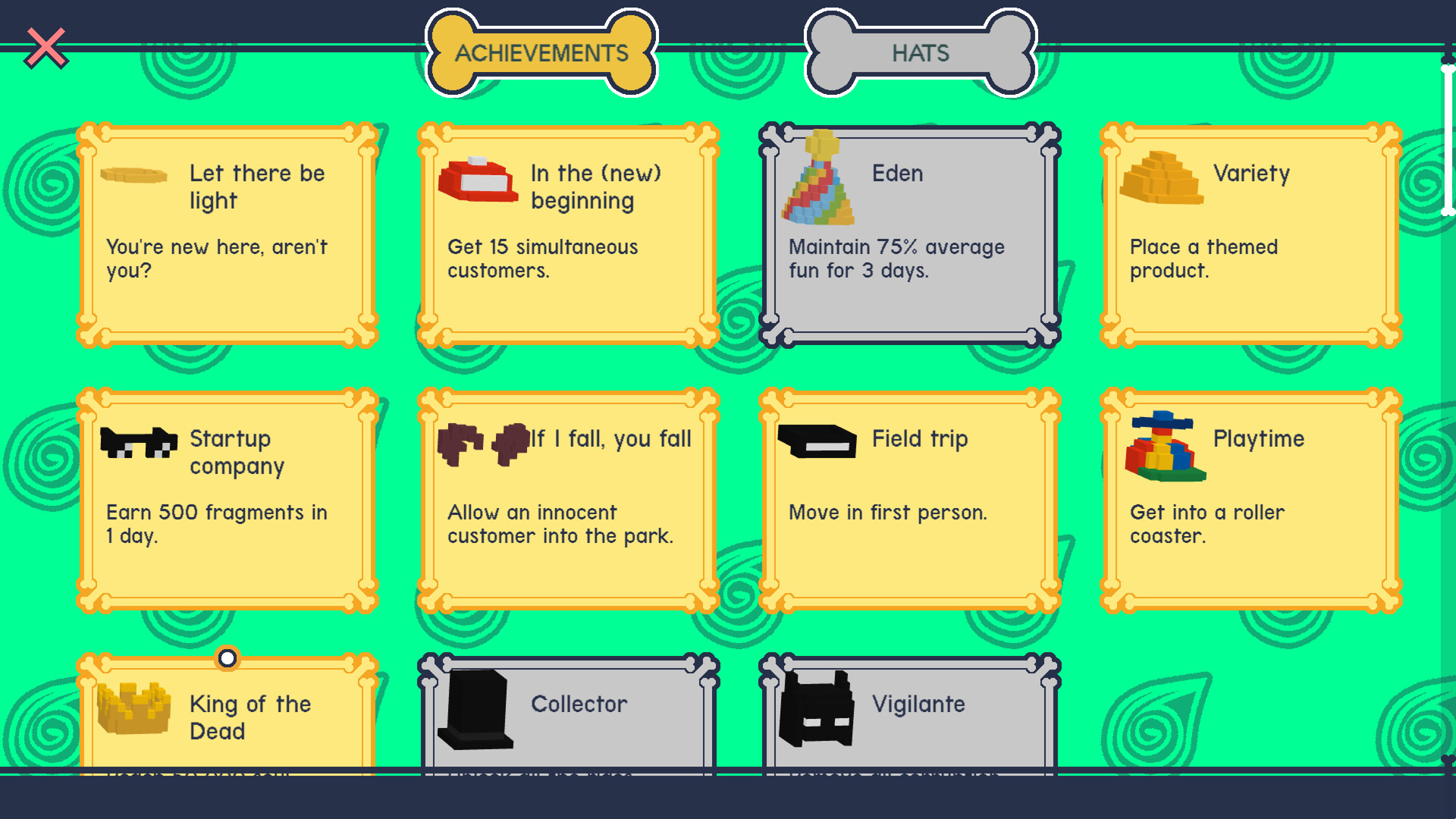 The rides are breaking down! Fix them by playing unique mini-games or hire employees to do the dirty work for you! Each theme comes with its own mini-game, ranging from puzzles, to rhythm games, to archaeology.