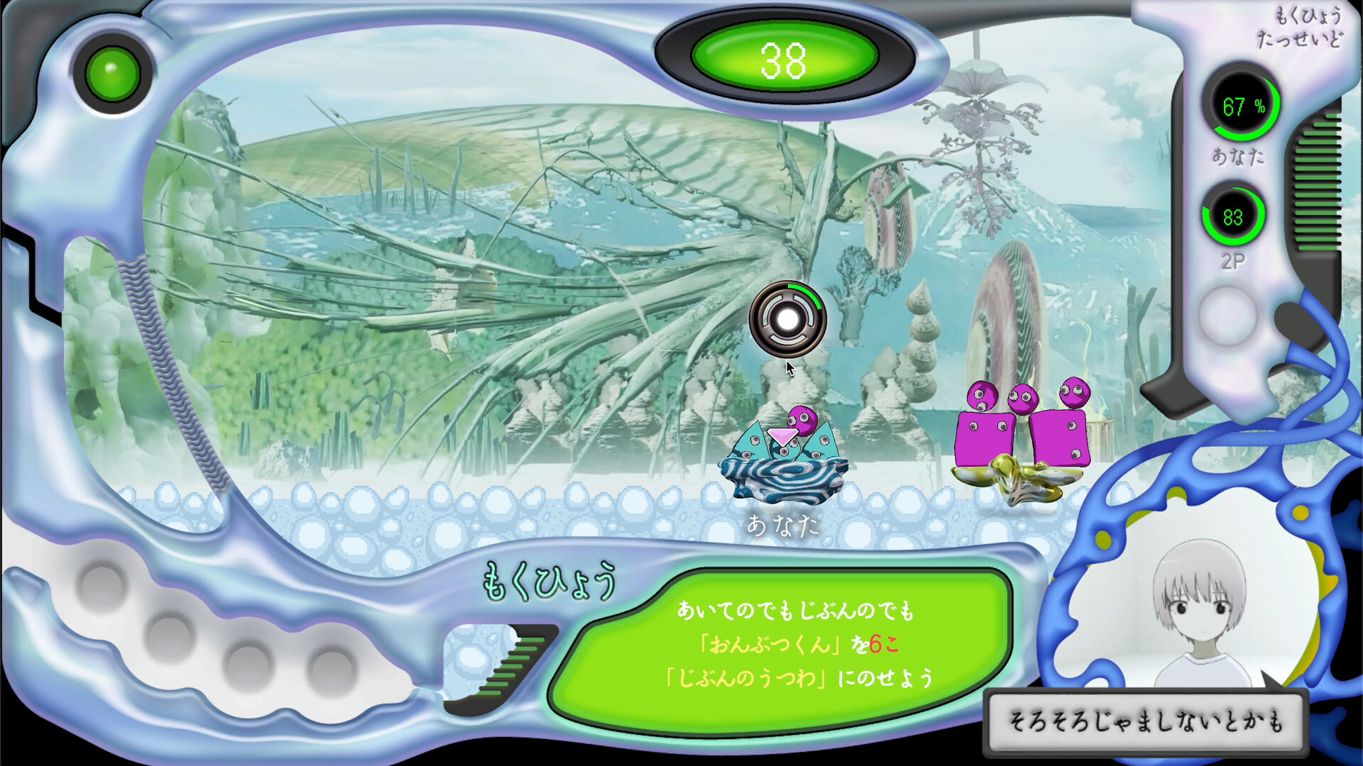 This unique puzzle game features a chaotic visual style that combines the Japanese folktale of Sai no Kawara?the story of children stacking stones in the afterlife?with "Gift," a religious educational toy that served as the precursor to modern building blocks.