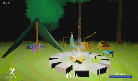Collect and consume 8 bottles to escape the forest's clutches and emerge victorious in this chilling adventure.