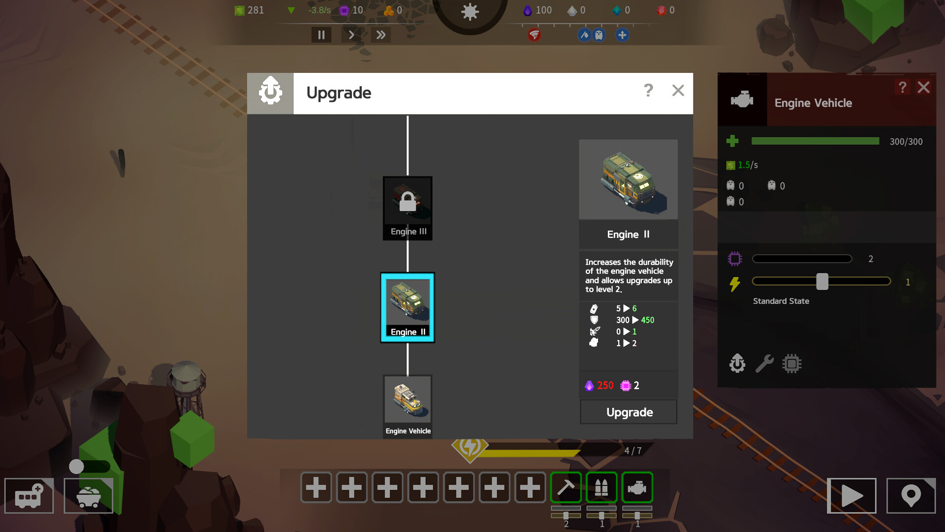 Keep your unstable train running. Strategically place vehicles in limited space and ensure you have enough resources. Prepare for fuel shortages, frequent breakdowns, and chronic power outages.