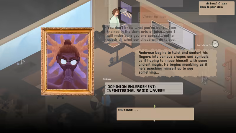 Sunset High ist ein 2D, storyreiches "W?hle-dein-eigenes-Abenteuer"-Spiel, das 2025 erscheinen soll. L?fte das Geheimnis, indem du Sch?ler gegeneinander ausspielst, deine Entscheidungen zur?ckspulst und die inneren Pers?nlichkeiten des Protagonisten auflevelst, w?hrend du durch Cliquen und soziale Dilemmas navigierst und dabei in einer Zeitschleife gefangen bist. ?ndere im Laufe des Schleifenverlaufs die Zeitlinie, indem du verschiedene Ergebnisse erforschst ? alles im Dienste des Mysteriums. Tauche ein in diese erz?hlerische Noir-Welt.