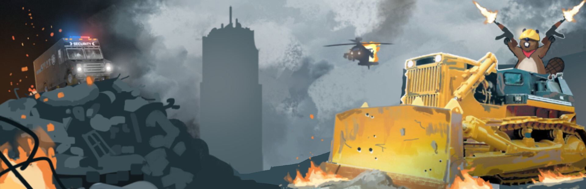 Your bulldozer is your greatest weapon! Plow through buildings and enemy hordes alike, leaving only smoke and ash in your wake. Use the scrap you acquire to repair your bulldozer and fortify its defenses!