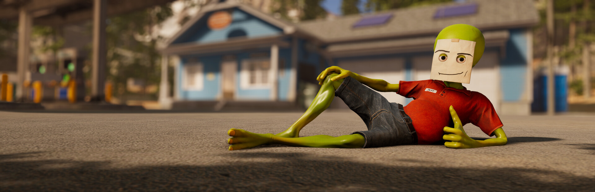 Aliens sind auf der Erde gelandet ? um eine Tankstelle zu leiten. Spielt allein oder mit bis zu 4 Spielern und f?hrt menschliche Aufgaben aus, um euch anzupassen. Die Leute z?hlen auf euch und zu euren Aufgaben z?hlt das Bef?llen der Regale mit den richtigen Dingen, das Betanken von Kunden und die Ausgabe von Essen. Aber am Wichtigsten ist eure Forschung.