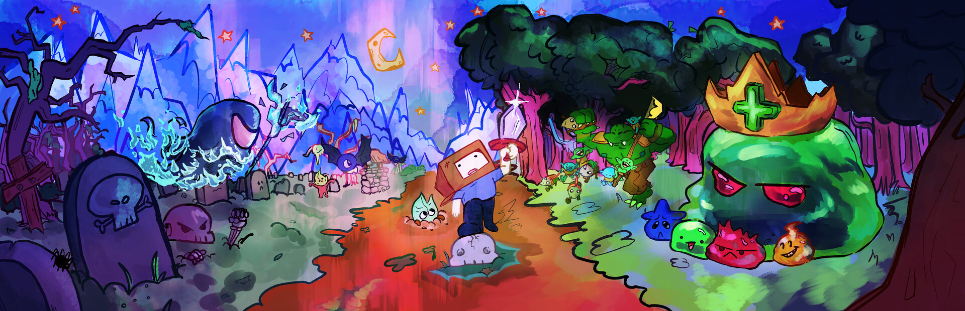 Nine unique biomes are all waiting, holding their own riches just for you!? Find villages and interact with quirky characters all over!? When you're ready, delve into the Dungeons!? Each biome has four dungeons, containing the keys to reach the main Boss.? Defeat each biome's boss to unlock blueprints and advance your technology!