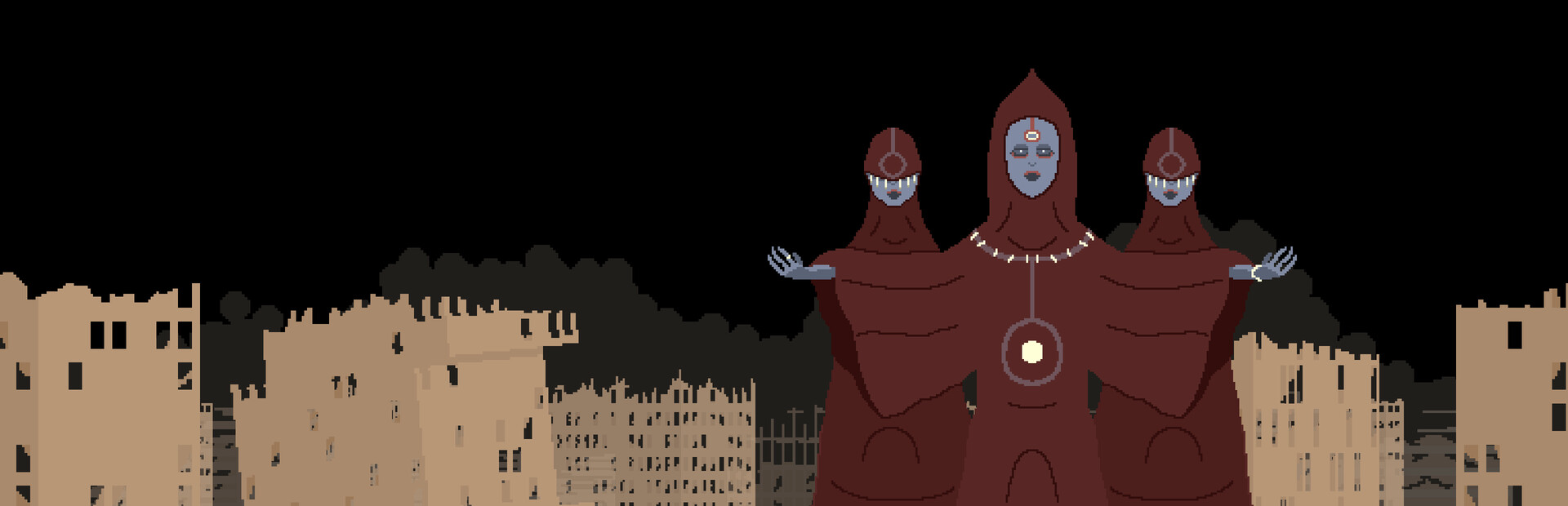 ? Atmosph?rische Pixelkunst: Ein d?sterer, angespannter visueller Stil, der eine zerbrochene Welt darstellt