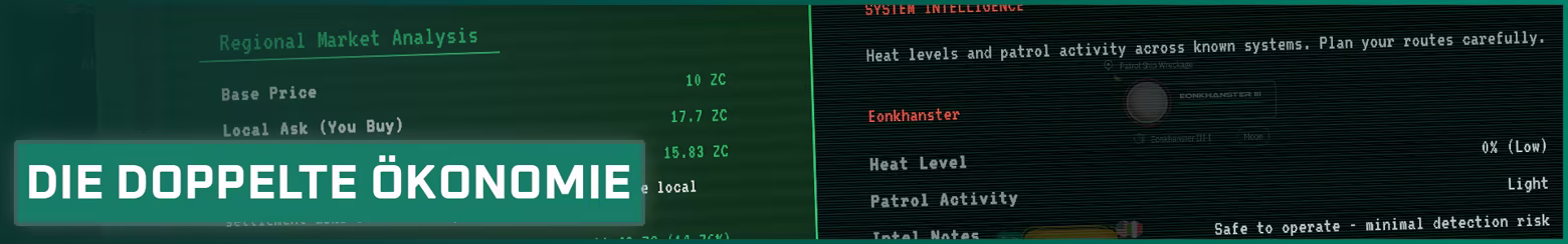 Oder hack dich ins DarkNet. Schmuggel Geisterfracht an Patrouillen vorbei. Arbeite dich hoch vom Niemand-Kurier zum Elite-Schmuggler. Aber pass auf die Systemhitze auf - zu viele Jobs in einem Sektor, und die Patrouillen fangen an, Fragen zu stellen.