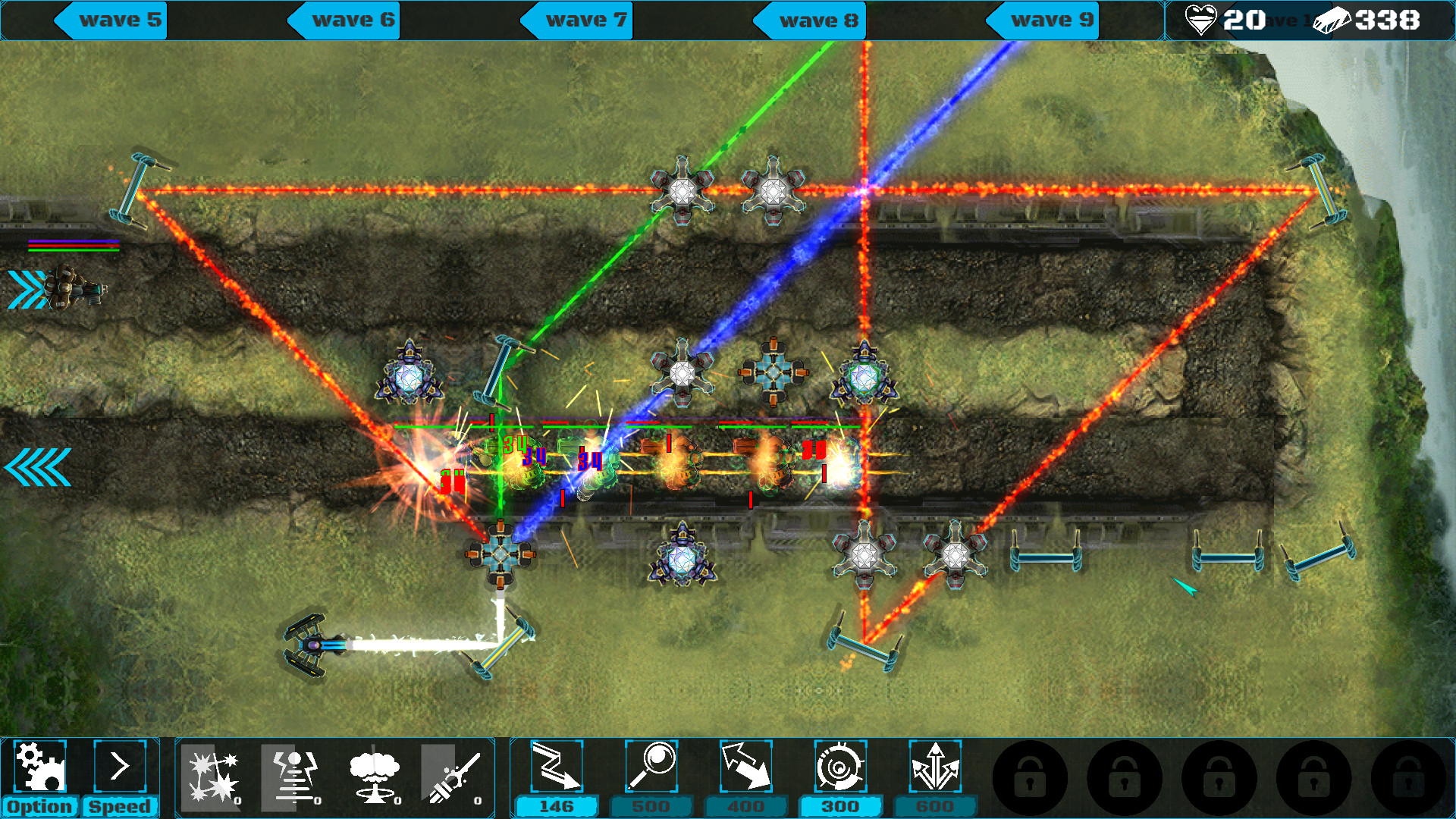 10 Types of Tower. Place them in the battlefield, change laser's direction to attack your enemy or convert laser to different color with special power.- Reflection: The most basic one, change laser?s direction.