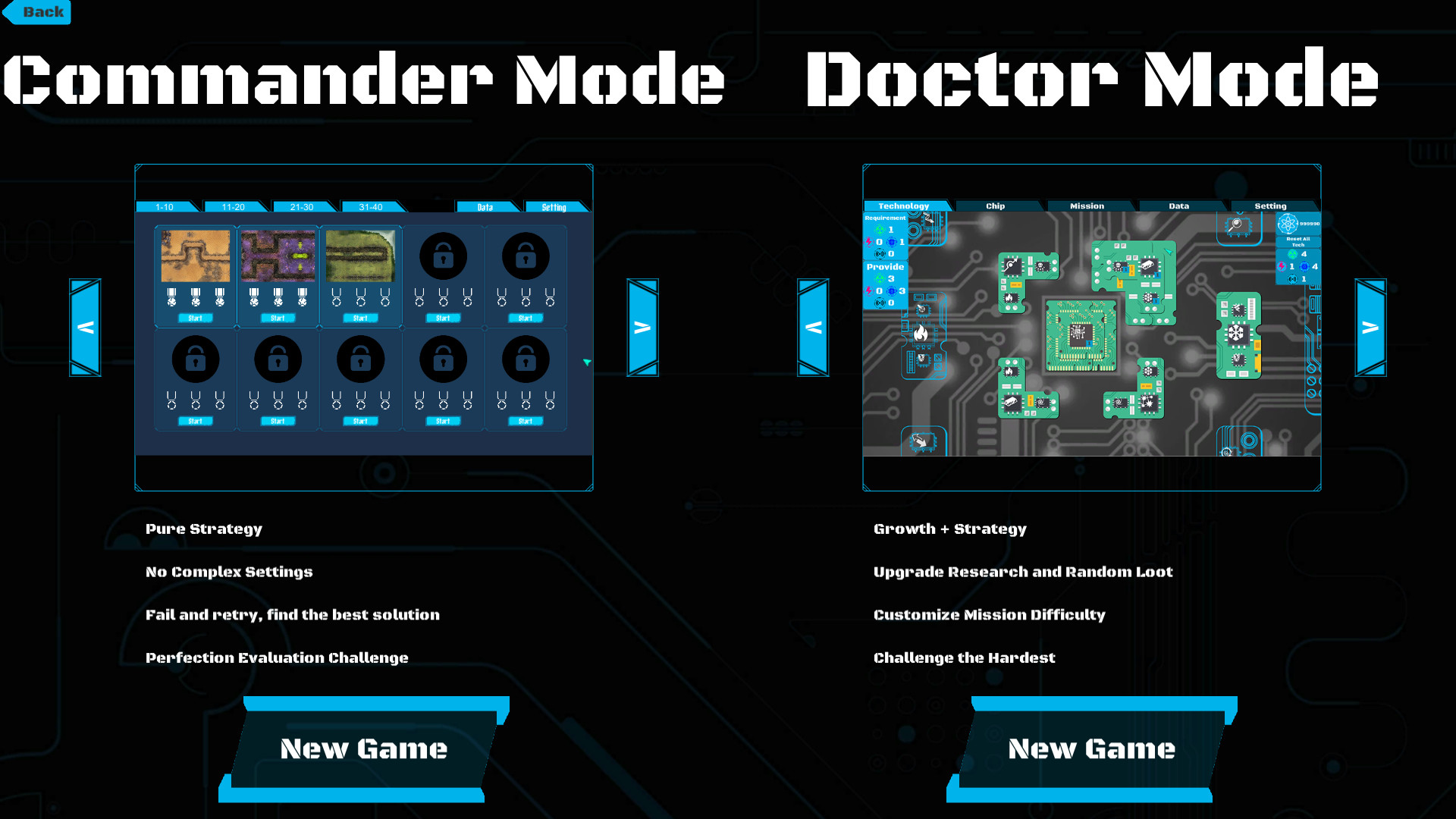 In Doctor mode, after each battle you will receive Tech Point and new Chips, use them wisely and make them as your advantage for next battle.- Tech Upgrade: over 120 researchable items.
