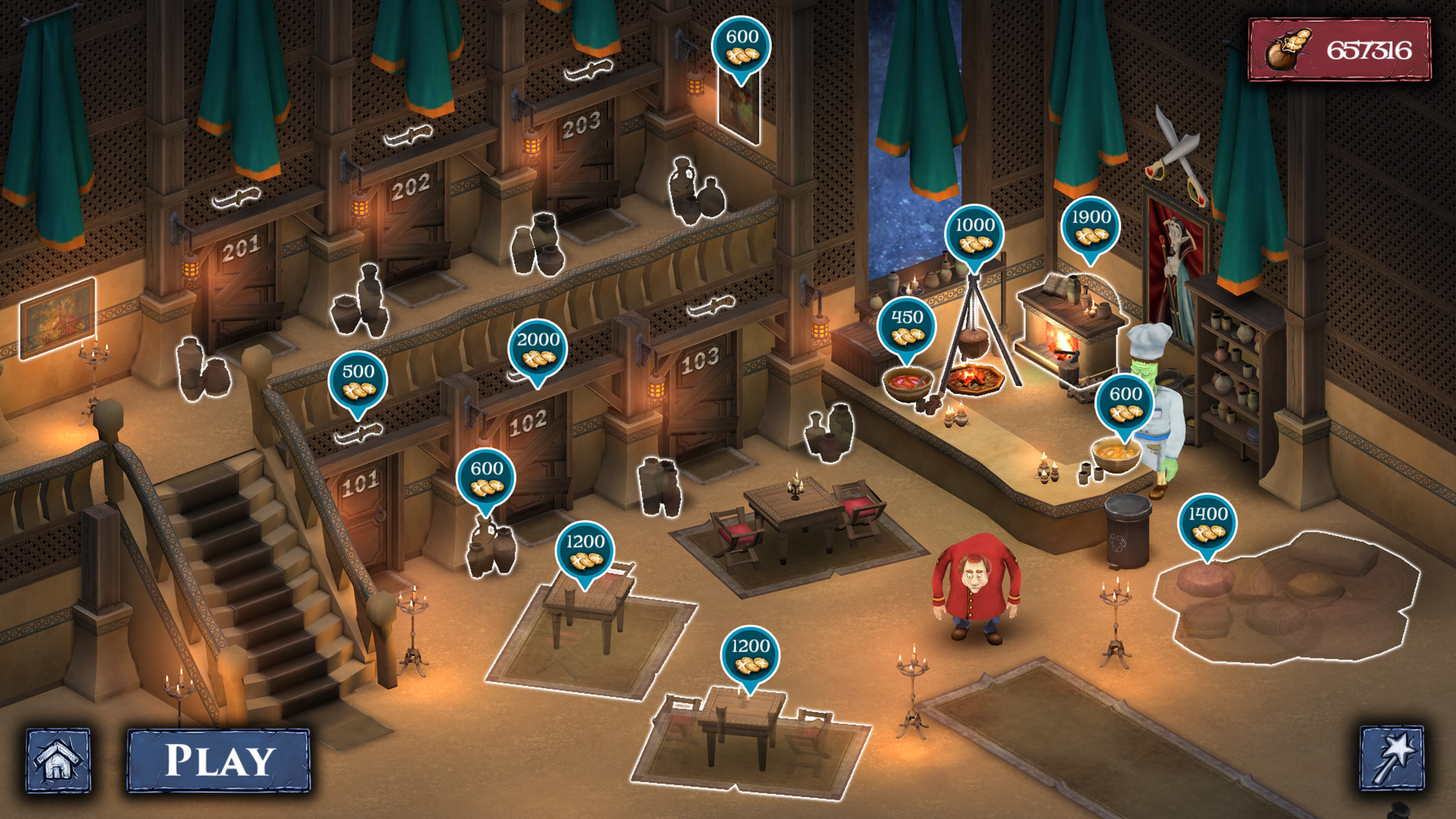 ? Total over 35 rooms and tables to unlock! The more rooms and tables will be available, the more guests will come, but also the difficulty level will increase!