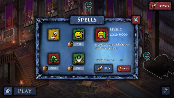With increased profits, you can grow your hotel, renovate your rooms and buy new tables and chairs or unlock new chambers. This will provide us with more guests to serve, which means even more profits, but also adds extra work and requires a great organization and a keen eye. However, if you are going to be too busy during rush hours, you can use small spells that will make the job easier. Spells can be, and even need to grow, to be renewed faster and have stronger effects.