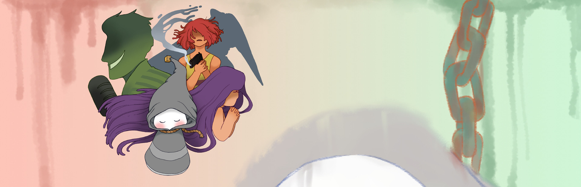 After managing to escape death row, a poor unfortunate little marshmallow with blood on their hands cannot shake a past that shackles them. They're sinking into an abyss of surreal horror, isolated but not alone. Join this terrible yet heartbreaking little marshmallow, a mysterious and intrusive romantic named Simon, a gang of friends who may not even be real, and other strange characters as they struggle in a hell of doubt... What's even the point? Is there any future our tortured little marshmallow can look forward to?