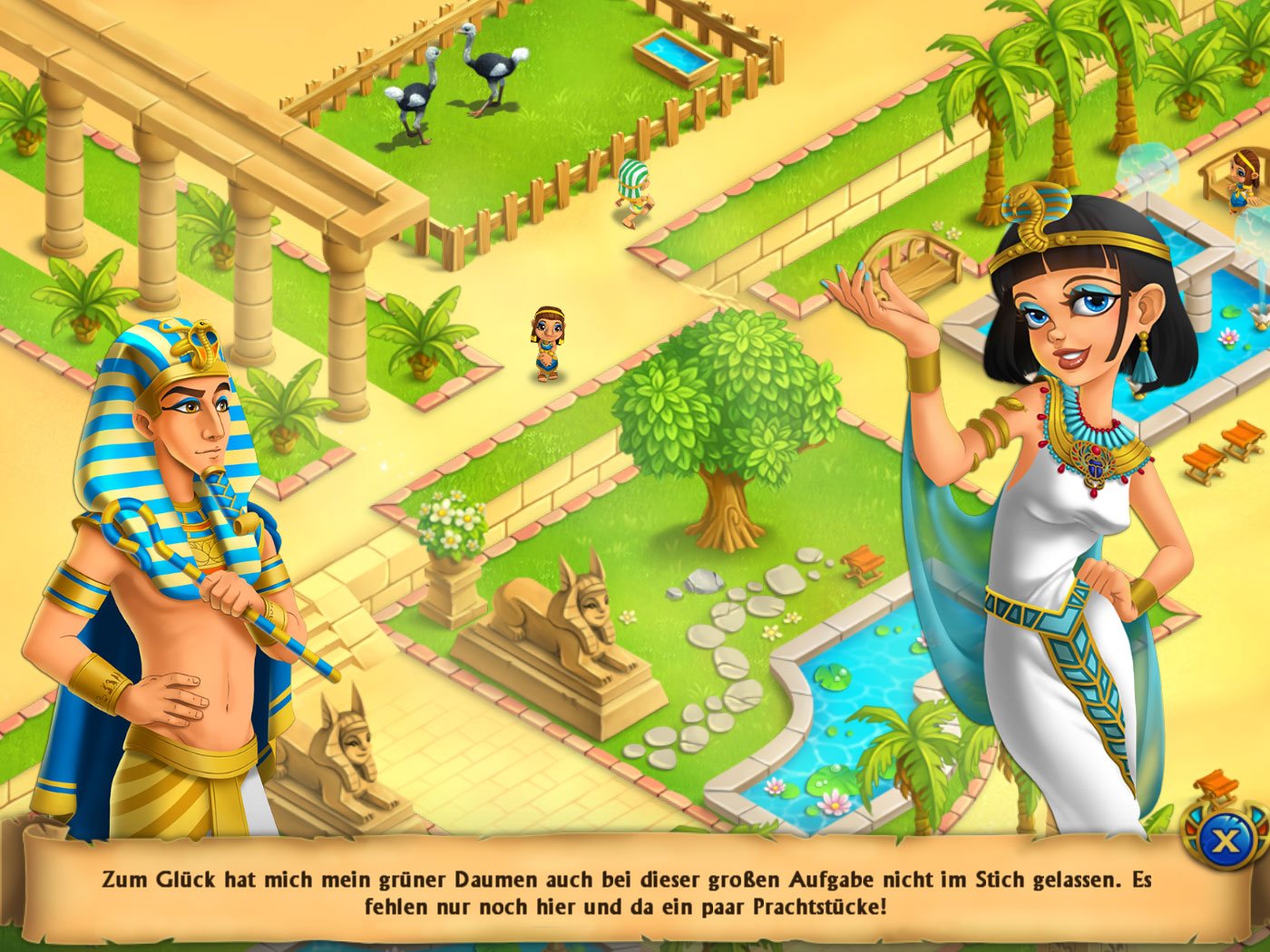 Errichte f?r die Tochter des Pharaos eine neue, noch sch?nere Parkanlage am Rande des Nils. Erspiele Boni und Troph?en, um den Park auszubauen und bl?hende G?rten, Wasseranlagen, Skulpturen, Obelisken und Pavillons zu erschaffen. Ein herausforderndes Match 3 Abenteuer, R?tsel- und Bonusspiele, Aufwertungen, Extras, Troph?en sowie eine packende Story erwartet Dich!