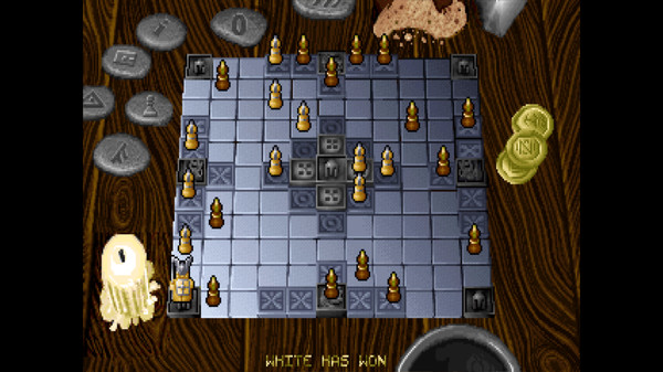 In this modern take on an ancient board game similar to Chess, one side must defend Odin against an onslaught of attackers as he makes his escape to one of the corners of the board. The sides are uneven, leaving Odin ambushed with only twelve soldiers against twenty-four attackers coming from all sides. Use sharp strategy and tactics to help Odin reach safety before he is caught defenseless between multiple assailants!