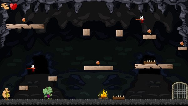 Caveman Alive - is a very simple platformer with elements of survival. Imagine that you were the last of your tribe. Everywhere are many enemies, thirsty for your death, and the main problem is hunger. One of your main tasks is picking up pieces of meat. After you have collected all the pieces of meat on a level the door will open , passing through which, you will be taken to the next level. Be careful on each level, a variety of traps is waiting for you. Act prudently and plan each step, cheat on monsters and then it won't be difficult to easily overcome all the surprises that have been prepared for this game.