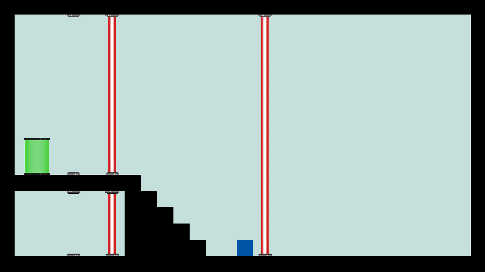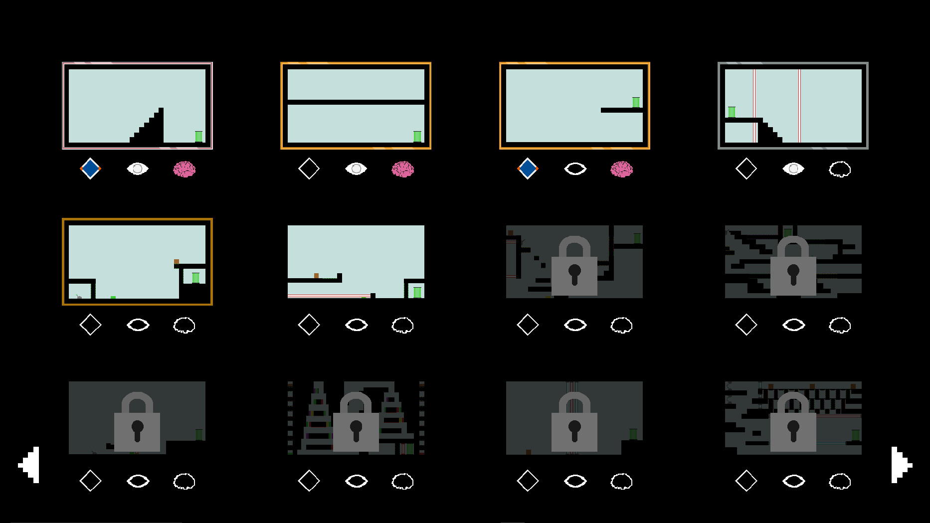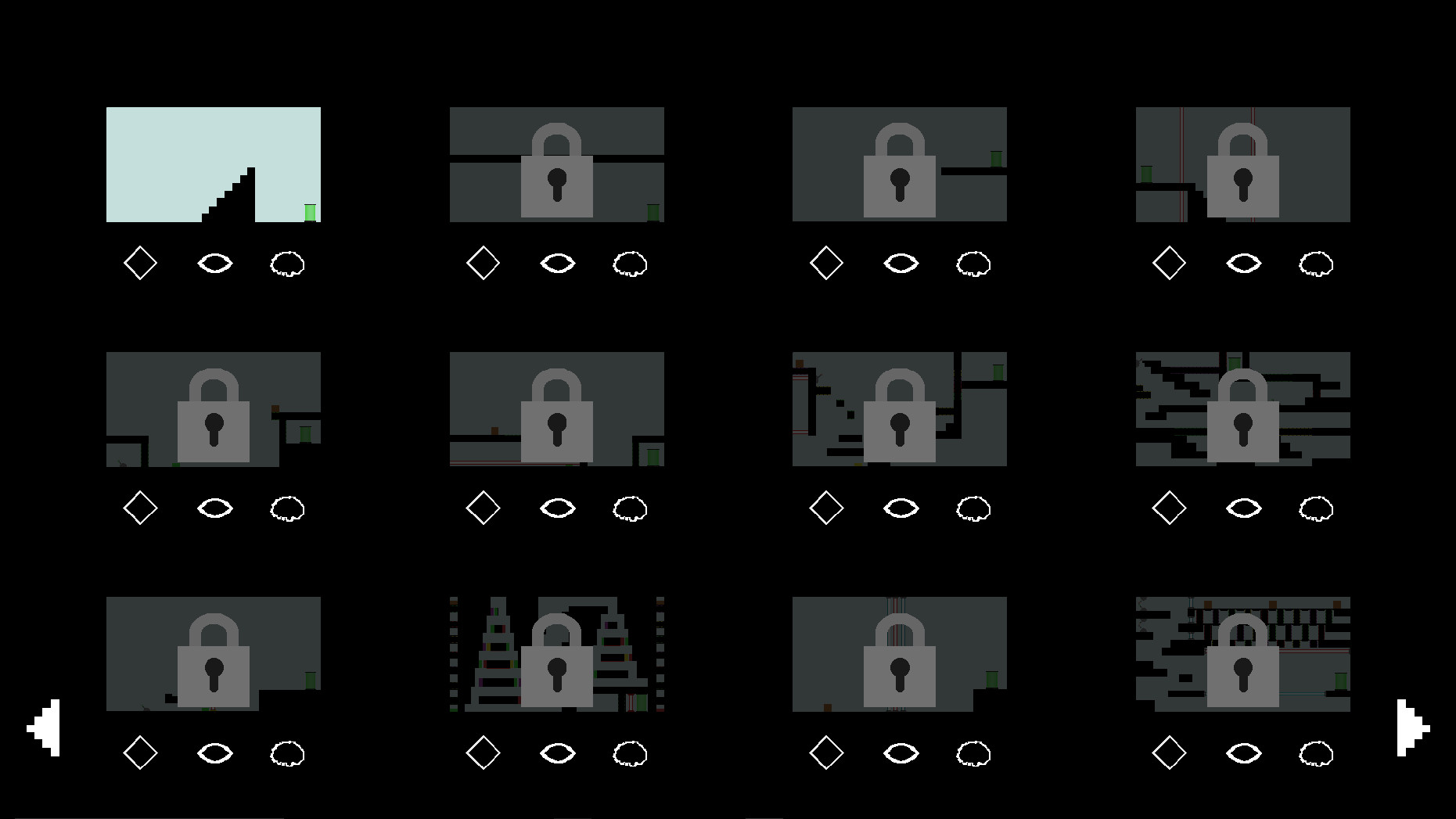 Blindsight is a puzzle platformer. It is made up of separate levels that require you to navigate to the exit by solving various puzzles. To solve these puzzles you have three abilities at your disposal. The first is the ability to Blink which allows you to enter an alternate version of the level to allow you to get past obstacles that you would otherwise not be able to. The catch is, when you enter this mode you are completely blind. This is where your second and third abilities come into play. In order to traverse the level while blind you must use your Blindsight, the ability to see sounds such as buttons being pressed or the hum of a nearby deadly deadly laser, and your Scanner, which allows you to look at what alterations will happen when you activate Blink allowing you to plan out your movements before going blind.