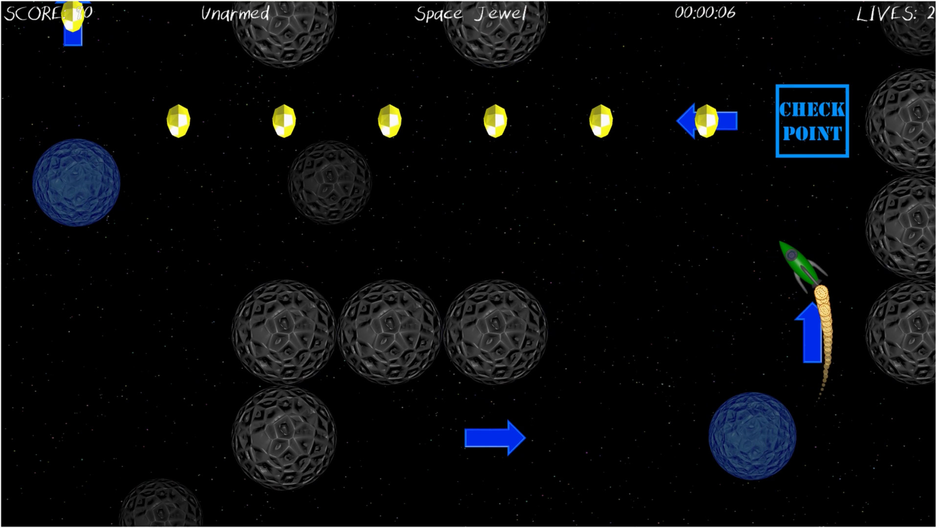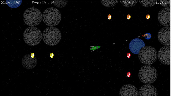 Apart from the classic split-screen player vs player mode, which was where "Turboraketti" excelled, Another Rocket Game features a complete story based campaign mode, in which you follow Spacey Pete and his trusty rocket Celeste, as they journey to "The Danger Zone" looking for adventure and treasure in the form of "Space Jewels".