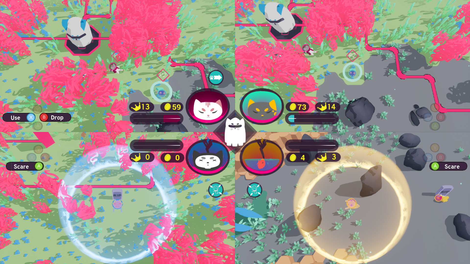 Even after you've been killed you can still put up a fight. Control the spectre of your cat after death, sapping energy from other players and scaring them to death!