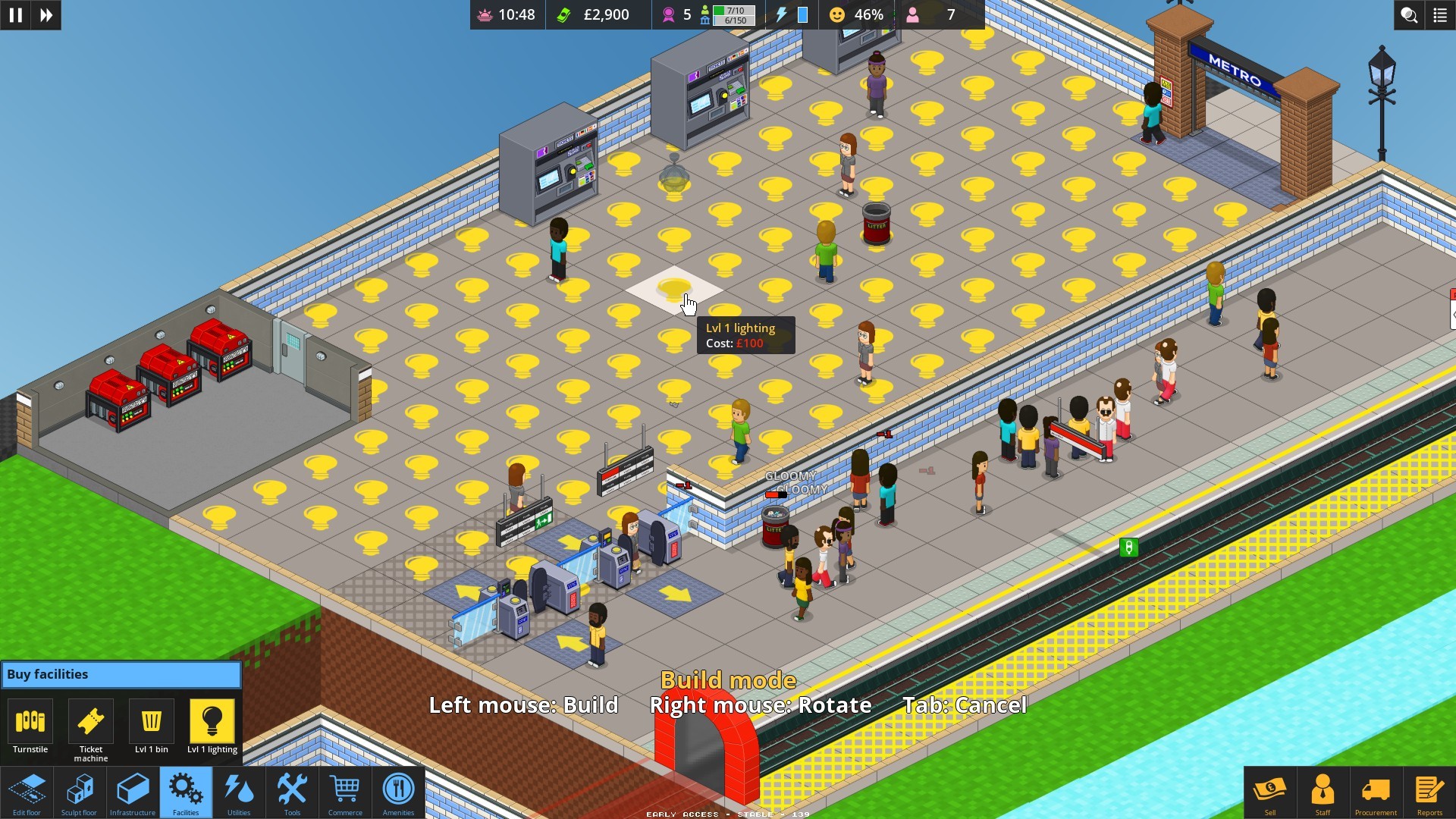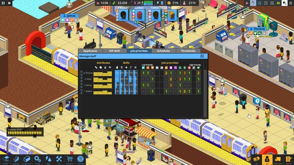 Sie m?ssen ein Spitzenteam zusammenstellen, es mit Werkzeugen ausstatten und einsetzen, um Ihre Station in Echtzeit zu betreiben. Sie k?nnen Priorit?ten setzen, Pausen planen oder sie einfach manuell stationieren. Halten Sie Ihren Personalraum gut gef?llt und Ihre Mitarbeiter nivelliert und Sie k?nnen Ihre U-Bahn-Station in neue Tiefen f?hren.