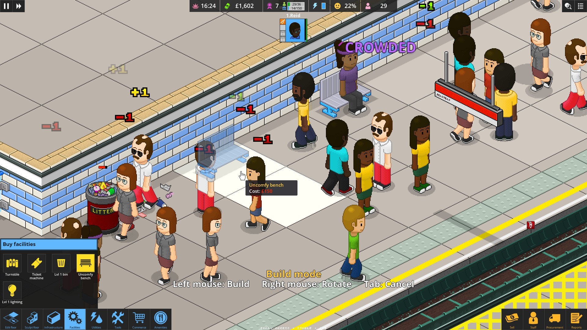 Pendler haben Bed?rfnisse, genau wie Du und ich. Die Gefahren einer schlecht gef?hrten Station - Versp?tungen, Hitze, Schmutz, Ratten - beeinflussen ihren Geisteszustand und den Ruf Ihrer Station. H?te dich vor Ganoven und Taschendieben, die versuchen werden, dein Vorhaben zu ruinieren!