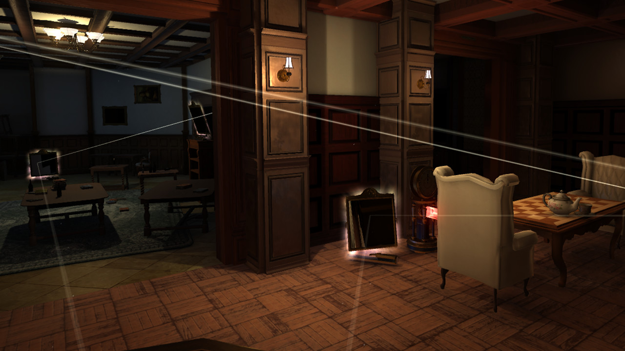There is a clue in the mirror about the situation at the time of the incident. You can obtain the clues by connecting the mirrors in the correct order using light. Then you can use a clock to go back in time.