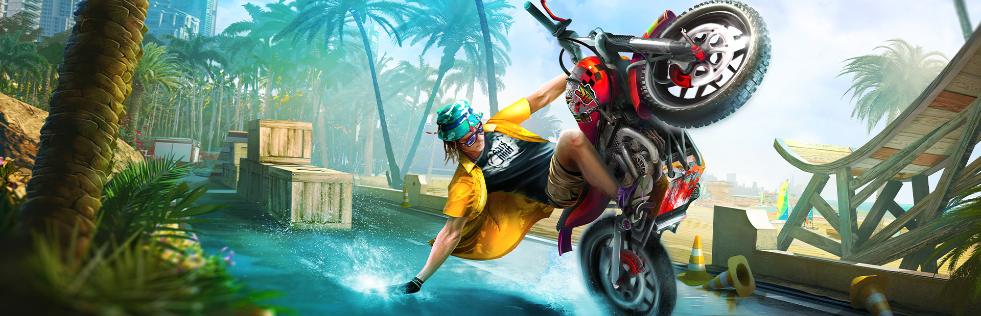 Ein pulsierender, sonnengetr?nkter Hintergrund und eine coole Atmosph?re dienen als Kulisse f?r atemberaubende Stunts. Macht euch darauf gefasst, mit Salti und Tricks ?ber Palmen und goldenen Sandd?nen zu rasen.