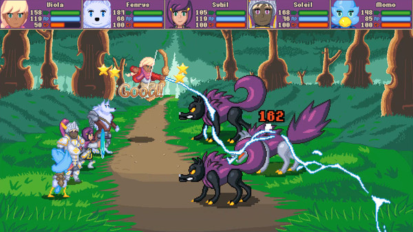 Viola: The Heroine's Melody pulls inspiration from many classic JRPGs. Lufia, the Mario & Luigi series, Final Fantasy, and even modern indie takes on the genre such as Undertale and Lisa. Turn-based battles, a ton of recruitable characters, and a personal story to sink your teeth into: Viola has all of this and more. However, Viola is not a passive RPG. Attacks require the player to time their button taps, and to unleash spells you'll have to follow a series of rhythm game-esque inputs.