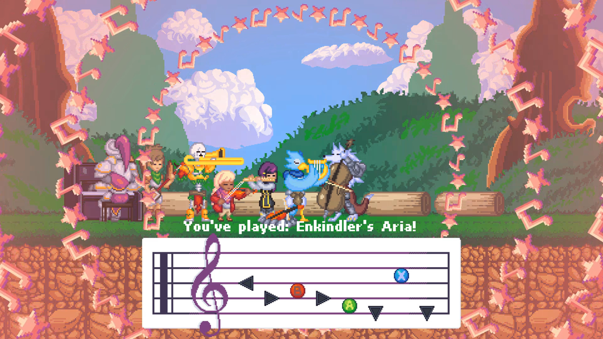 Music is key to Viola. Every character in your party has their own instrument, and they'll eagerly play along with the songs you learn along your journey. All the songs have their own magical effect, like summoning a bird, creating a magical campfire, unlocking secret pathways... If you've ever played a Zelda game, you'll feel right at home.